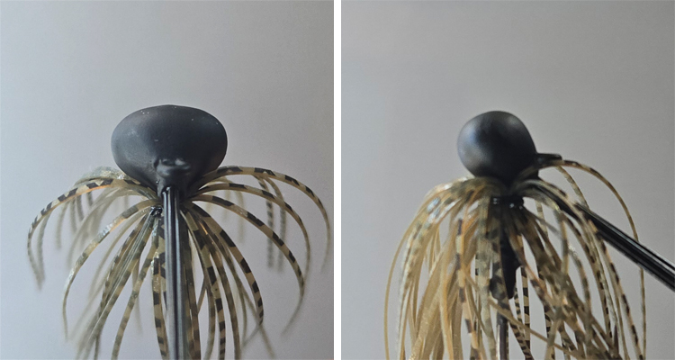 TGブローはあえてボトムを這う設計にするためにワームキーパー部までしっかりウエイトをのせてあります。対してフットマスターはそこは最低限。